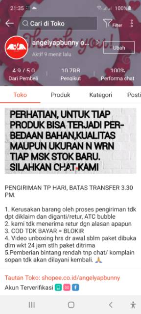 - Toko ini melayani pembayaran COD atau Pembayaran Langsung ke Kurir.
